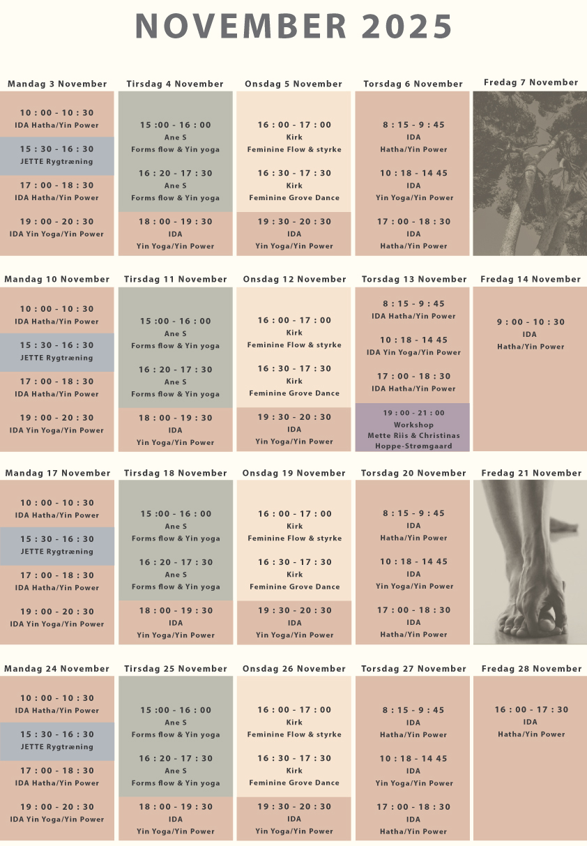 De senere år har jeg uddannet mig til bindevævsterapeut samt yin-yoga instruktør . Jeg holder løbende workshops i Mindful Yin-Yoga og de 5 meridian-par, som har afsæt i den kinesiske medicin.. Mine workshops er for alle, og vil øge muligheden for at frigøre blokeringer/stagnationer i kroppen. De er tilrettelagt således at de skaber RO til nervesystemet og nedsætter smerter i kroppen, gennem de lange bilde bindevævstræk-stræk der holdes i 2-5 min.